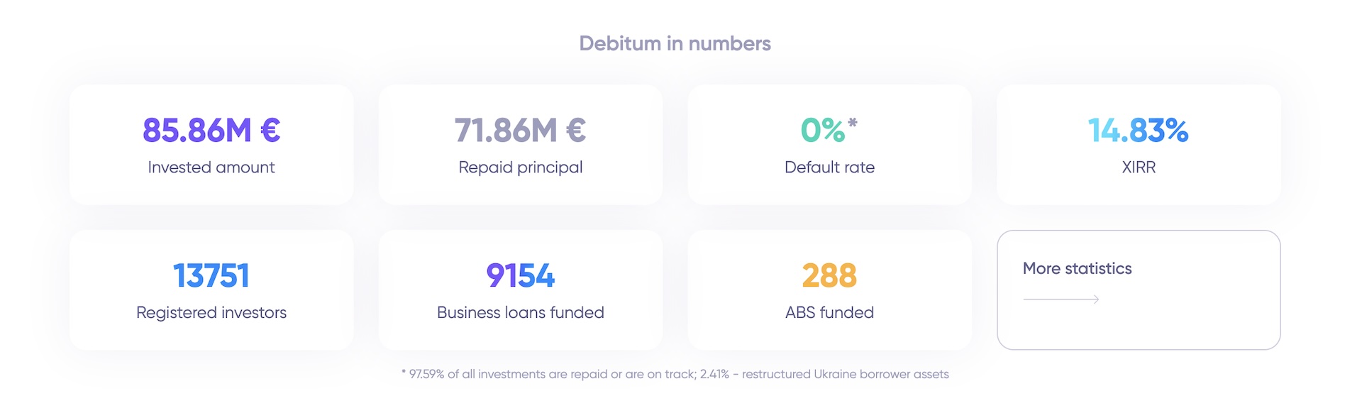Debitum is really different from the other Peer-to-Peer lending platform as they solely offer investments in business loans, which are way safer than loans to individuals, especially with lower default rates. This of course also explains why the returns on the platform are slightly lower than other platforms, as you invest in safer assets.