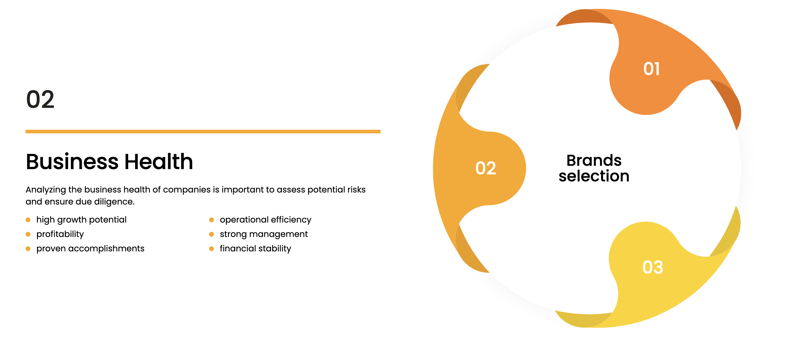Second, they evaluate the business health, looking for high growth potential and ensuring due diligence to assess potential risks.