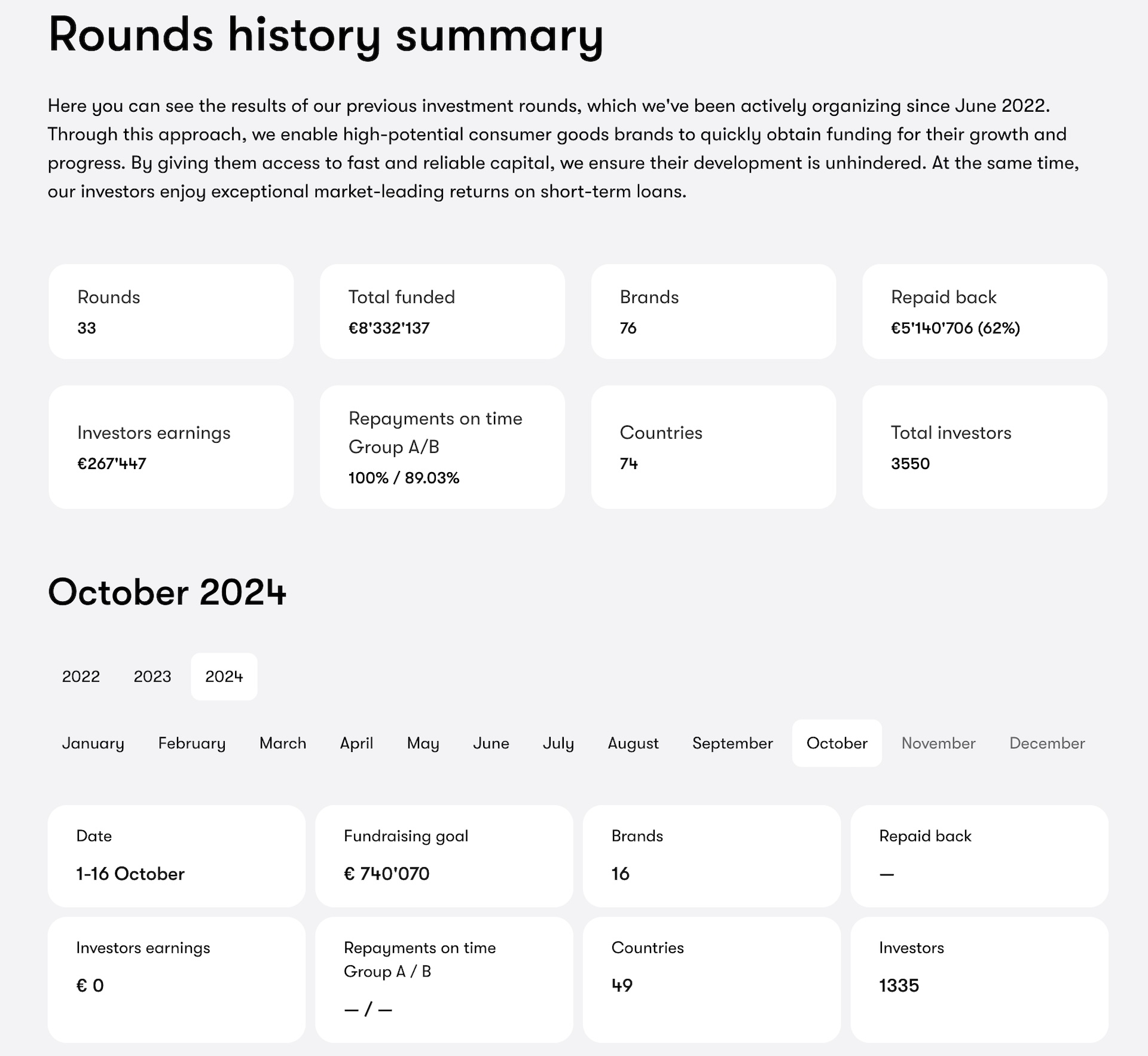 What I liked is that they have a full history of the previous investments in brands of the platform, which is great to see what to expect: