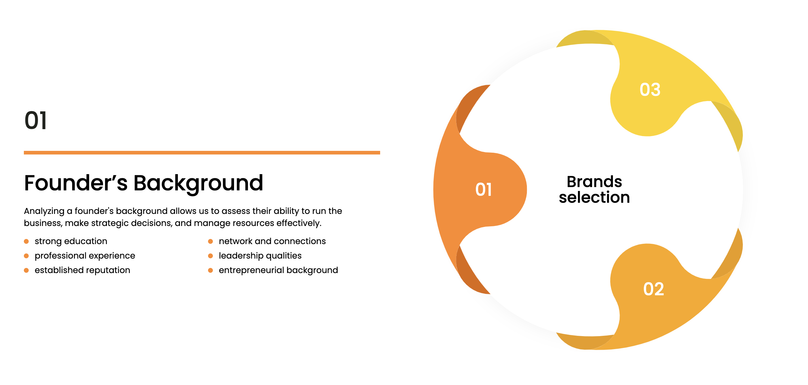First, they analyze the founder's background, focusing on education, professional experience, reputation, network, leadership qualities, and entrepreneurial background to assess their ability to run the business effectively.