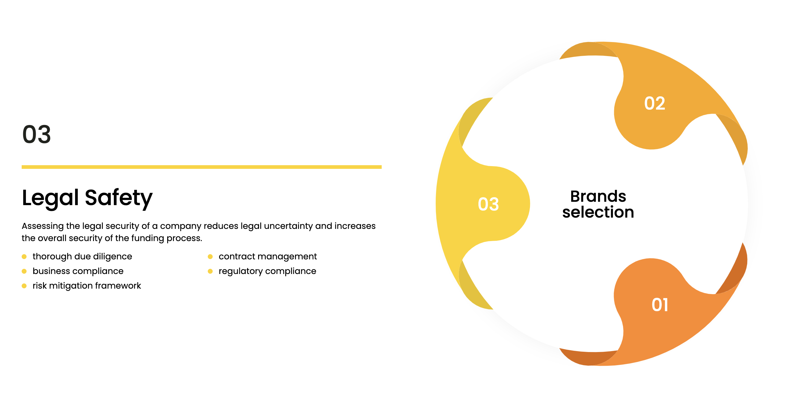Lastly, they assess the legal safety of the company, conducting thorough due diligence to ensure business compliance and implement a risk mitigation framework, thereby reducing legal uncertainty and increasing the security of the funding process.