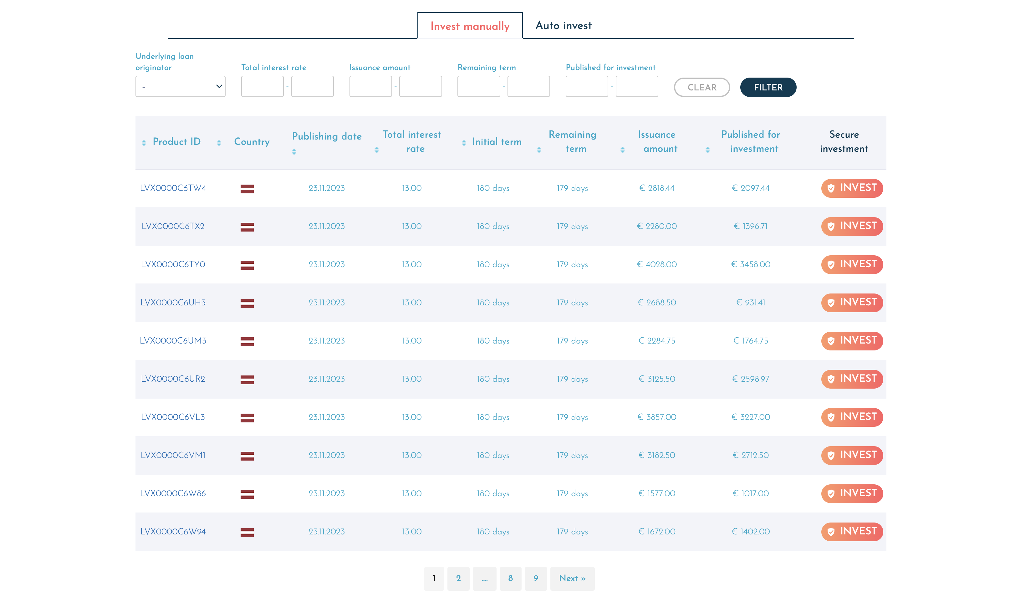 The next step is to actually invest in some loans. You can do that from the investments menu, where you will find the list of all available loans on the platform.